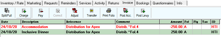 If the inclusive amount is ticked to distribute on a particular night, then distribution will take place on that particular night of the guest's stay