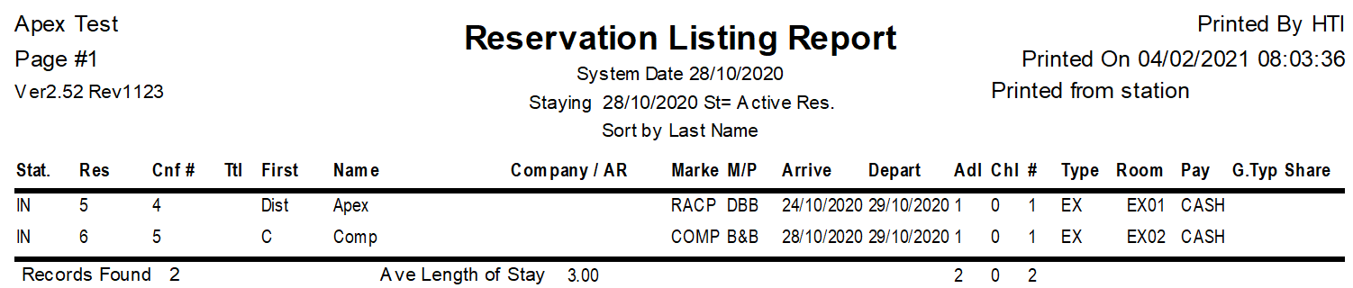 You can either navigate directly to that reservation (reservation lookup or archived look up) or use the summary reservation listing report to see the following: