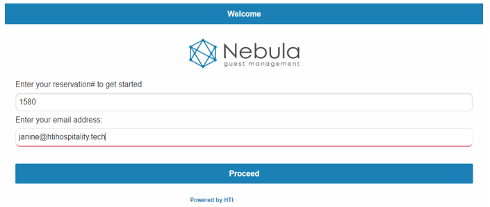 - Guests will enter their Reservation number and email address, click on proceed and check themselves in.