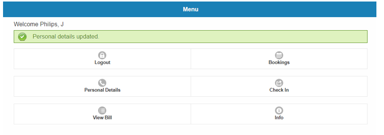 - On the Personal Details option, the guests can edit and update their personal details.